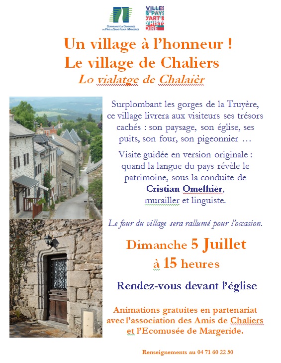 En partenariat avec le Pays d’Art et d’Histoire de St Flour, Christian OMEILHIER sera notre guide pour nous faire découvrir toutes les subtilités architecturales et historiques de Chaliers.