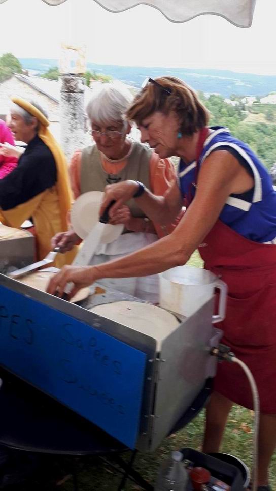 Puis, apéritif dans la côte, plat chaud devant la cure et fromage et crêpes devant l’église.